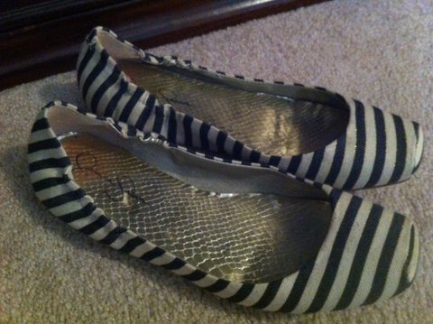 Only worn once. I say "good" mainly because of a tiny stain (see pic). They were actually already stained in the store, so I got a little discount on them. It's very small.