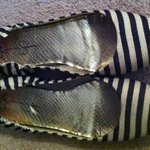 Worn a couple of times. No obvious wear. Super fun with dresses or rolled-up skinny jeans. Even shorts. Very versatile.
