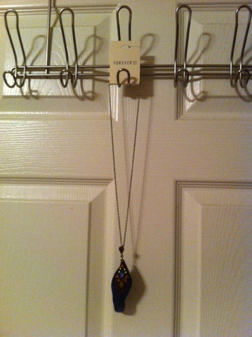 Forever 21 long necklace with jeweled feather pendant - brand new
