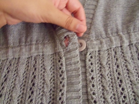 This is one of my favorite tops it dresses up jeans and flats. I'm giving this up because I no longer wear it. Listed as Meh because the button hole has stretched out shown in the pic below. Might keep this one.