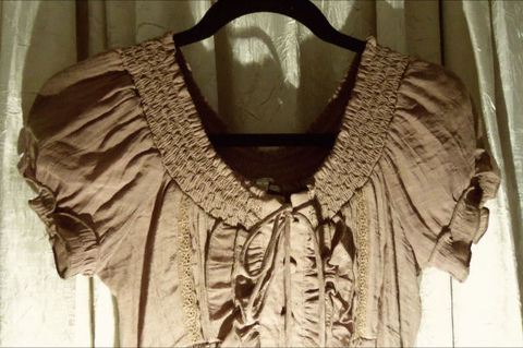 I'm not sure if I'm ready to give this blouse up It's just been in my closet for a long time. It has a nice fit loose fit above breasts. Although tag says small I think it fits a medium.