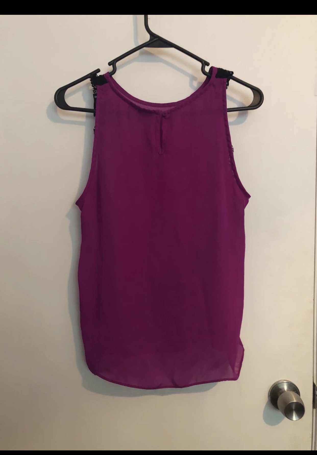 Fun purple and black top that can be worn on a date or at work! Fun and stylish but comfy too.