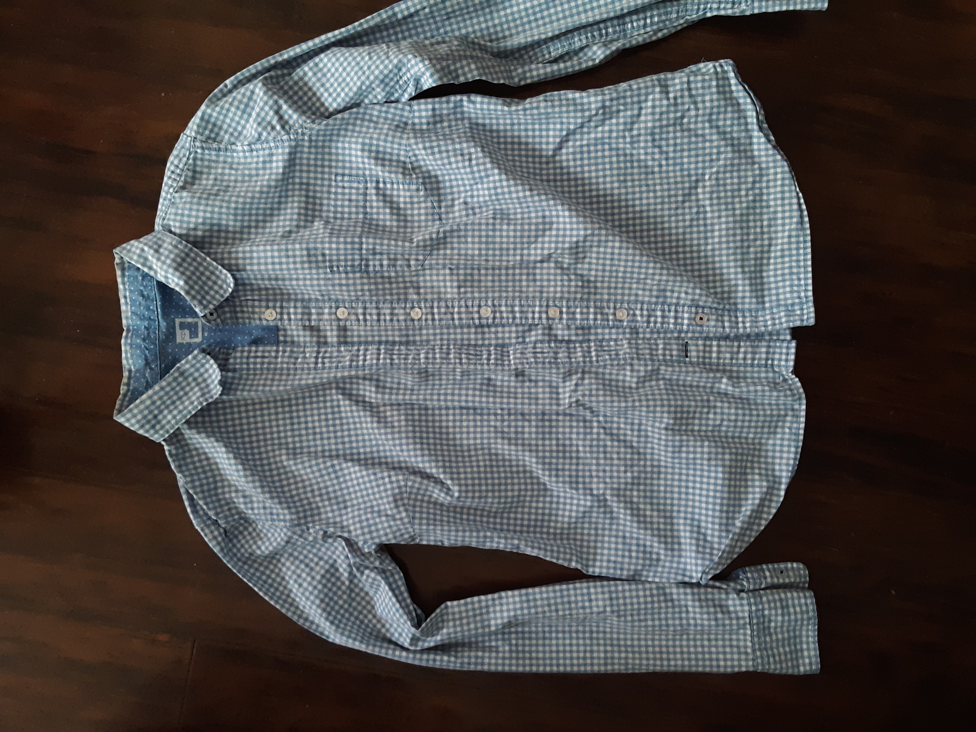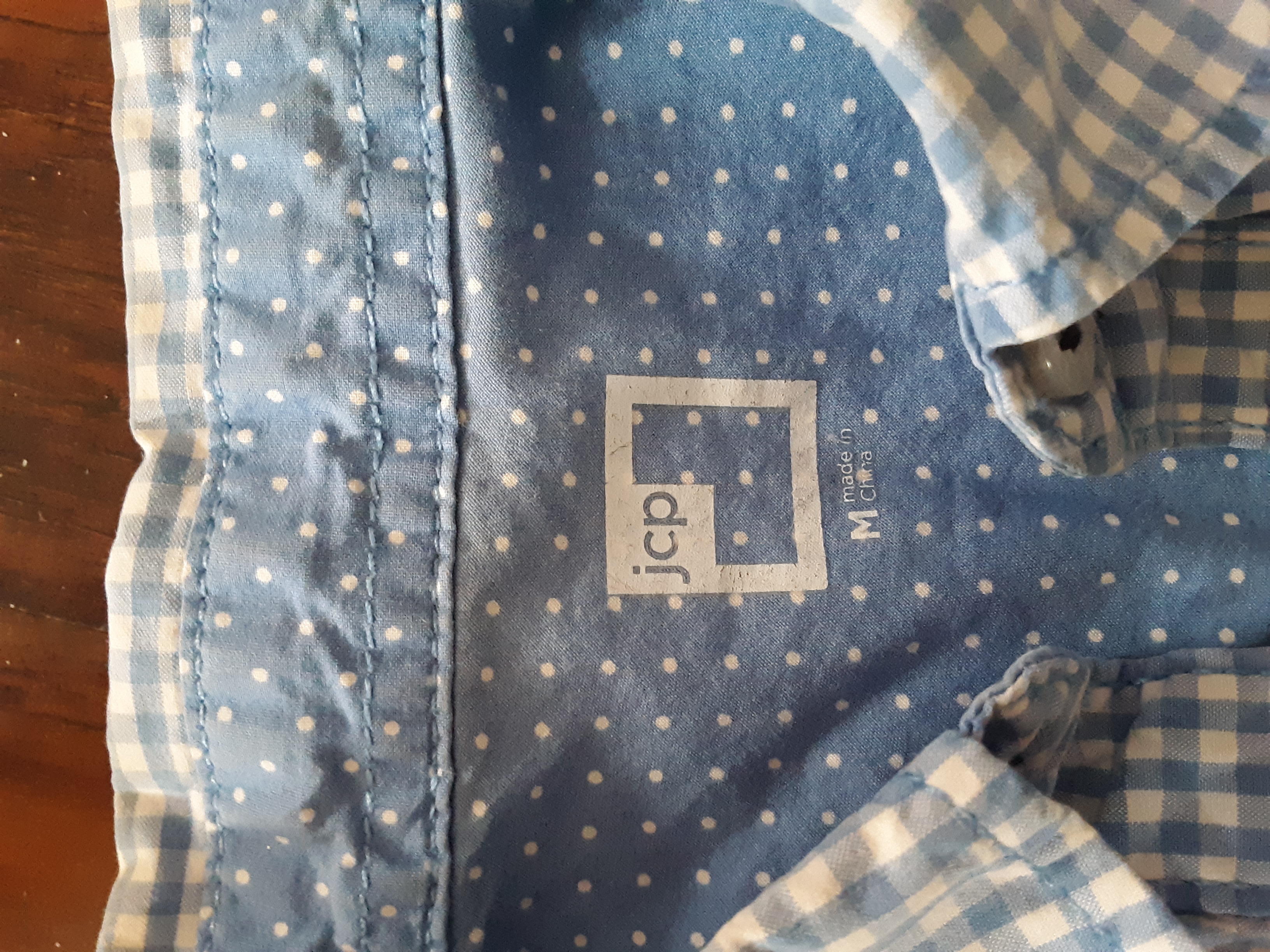 Light blue, plaid, women's button up shirt. JCPenny brand. Size M