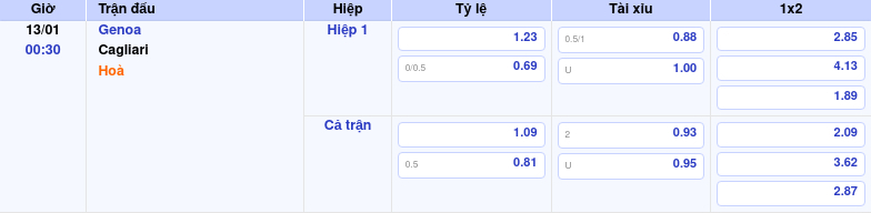 Genoa vs Cagliari: Dự đoán kết quả trận đấu và kèo châu Á