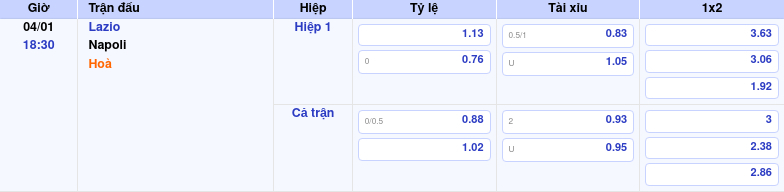 Lazio vs Napoli – Soi kèo, nhận định tỷ lệ cược chính xác