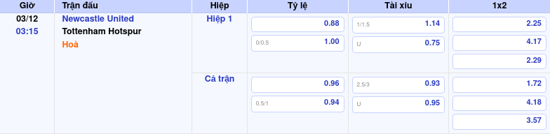 Dự đoán trận Newcastle United vs Tottenham Hotspur lúc 03:15 ngày 03/12