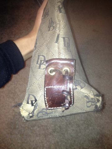 rips on the edges/bottom where its set down (As pictured). Forgot to take the picture but if you ask I can take one for proof of authenticity of the inside tag. Just so you know that it's there :)