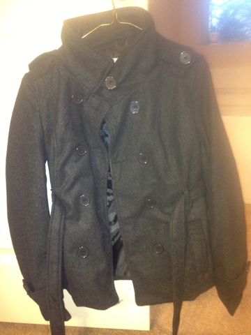 Size medium. Fits snuggly. Very cozy on inside, and very form flattering. Never worn before! But removed the tags. ***This does not have to go!