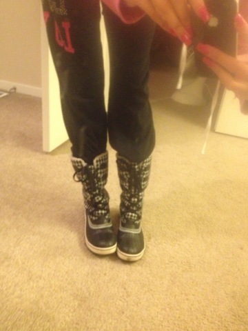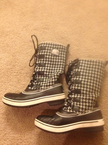 excuse my outfit in the pic lol! just a quick shot. *you have to be a little creative with the 2d image provided, it's one of those things that you just have to see in person. I've gotten manyyyy compliments on these in public!* Retail at Nordstrom's for about $200 (can't remember exact price) My go-to boots for the winter. Reallly warm and cozy. inside is like, a lamb fur lining. Waterproof. In 'good' because the white soles are a little dirty, nothing bleach can't fix up. Can be worn with manyy different styles. (For casual, i wear them with the laces untied and boots pulled out so they look baggy and cute.)