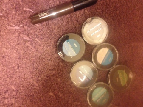 Eyeshadows & Brown Mascara. Only one eyeshadow was lightly used, rest are brand new. Mascara never used.