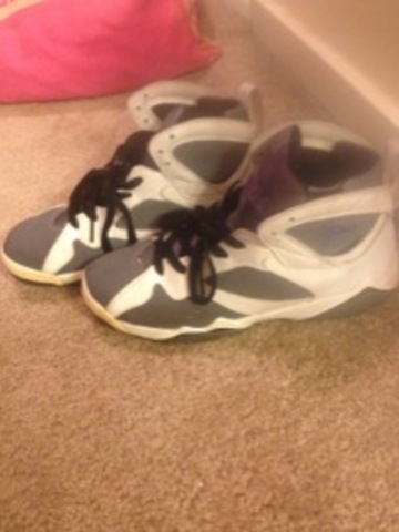 Worn only like three times, a few dirt spots but all are minor and can be washed off. Inside has a little piece of grass or something stuck to the heel part but nothing bad.
