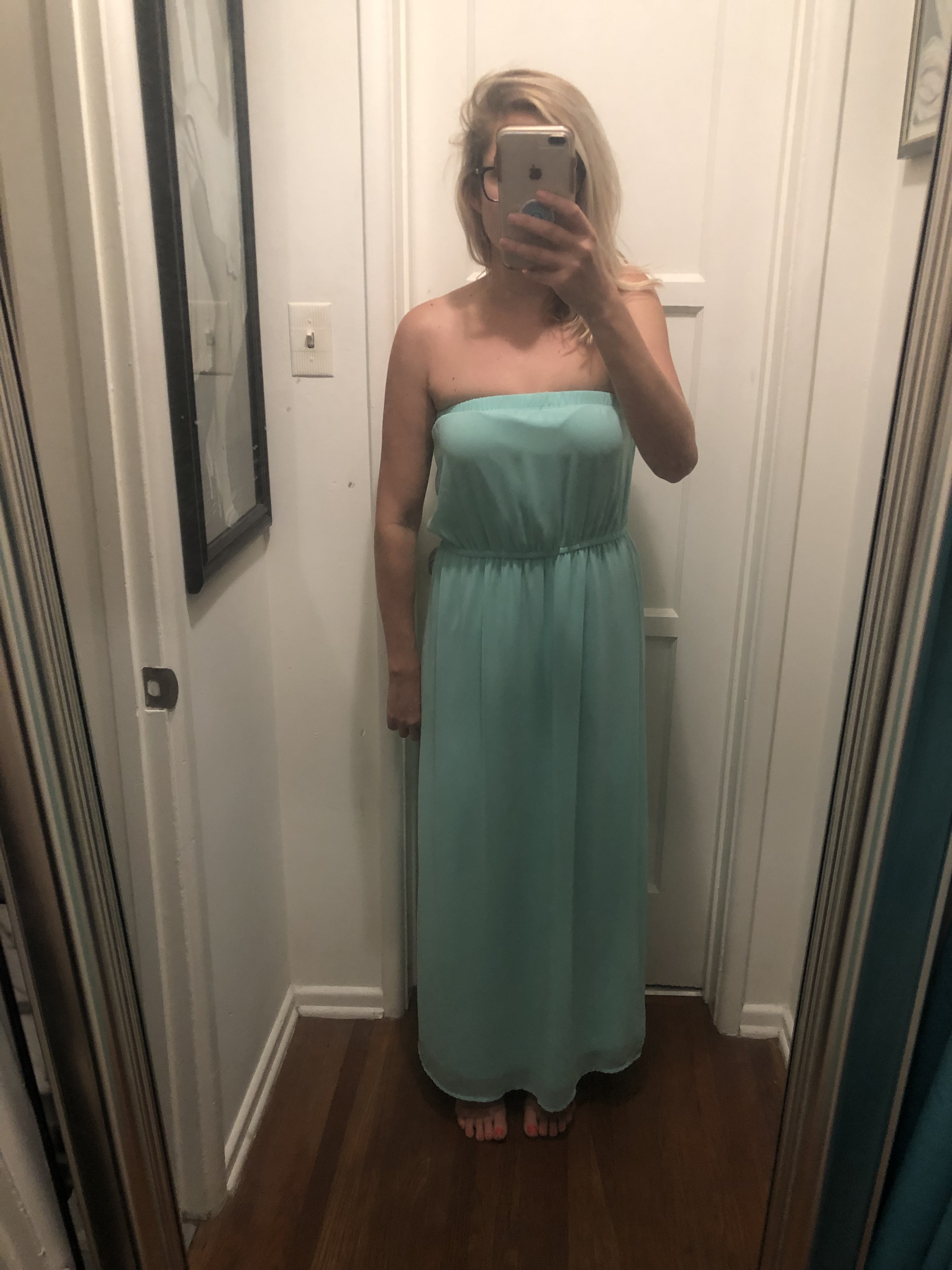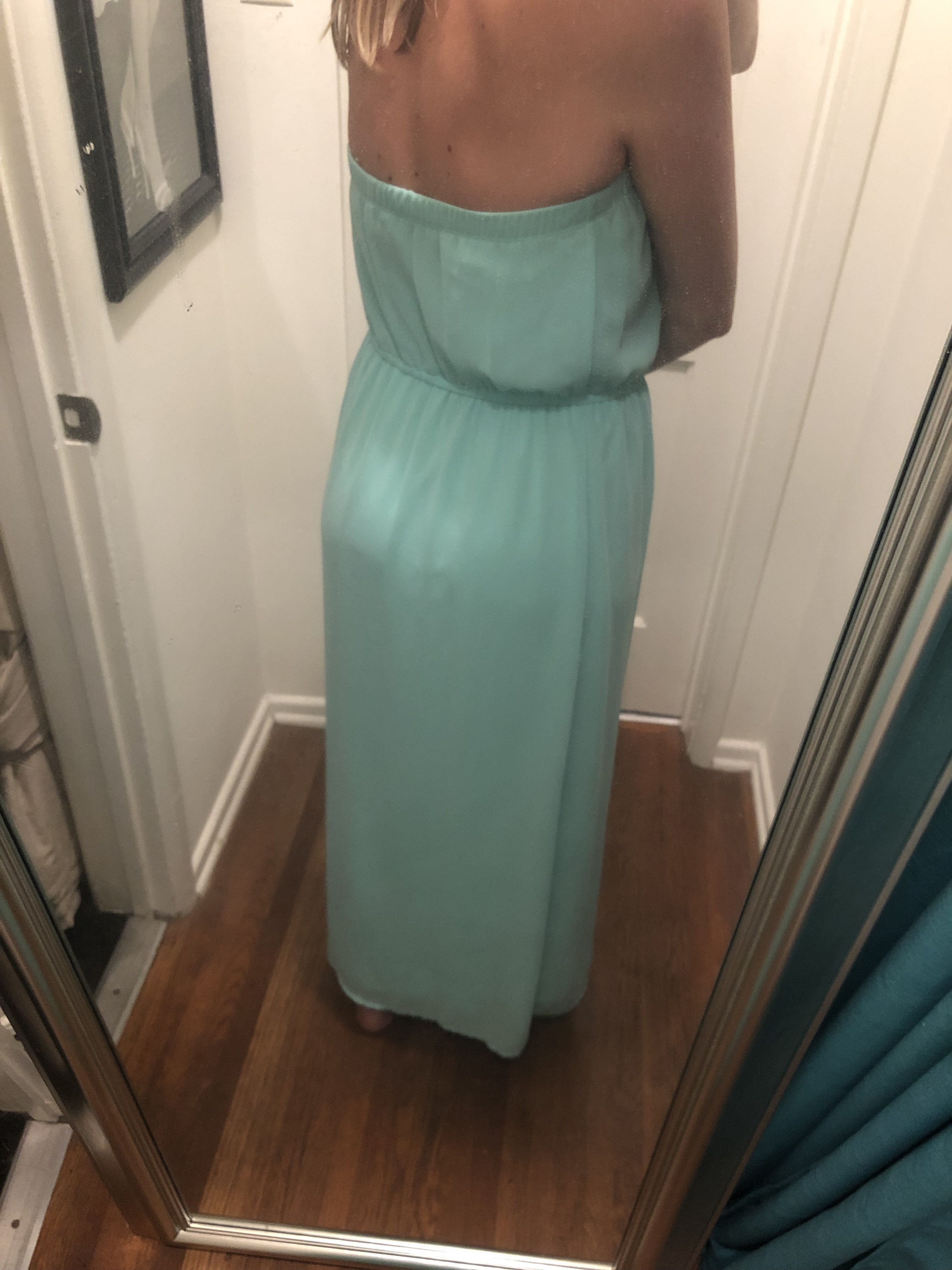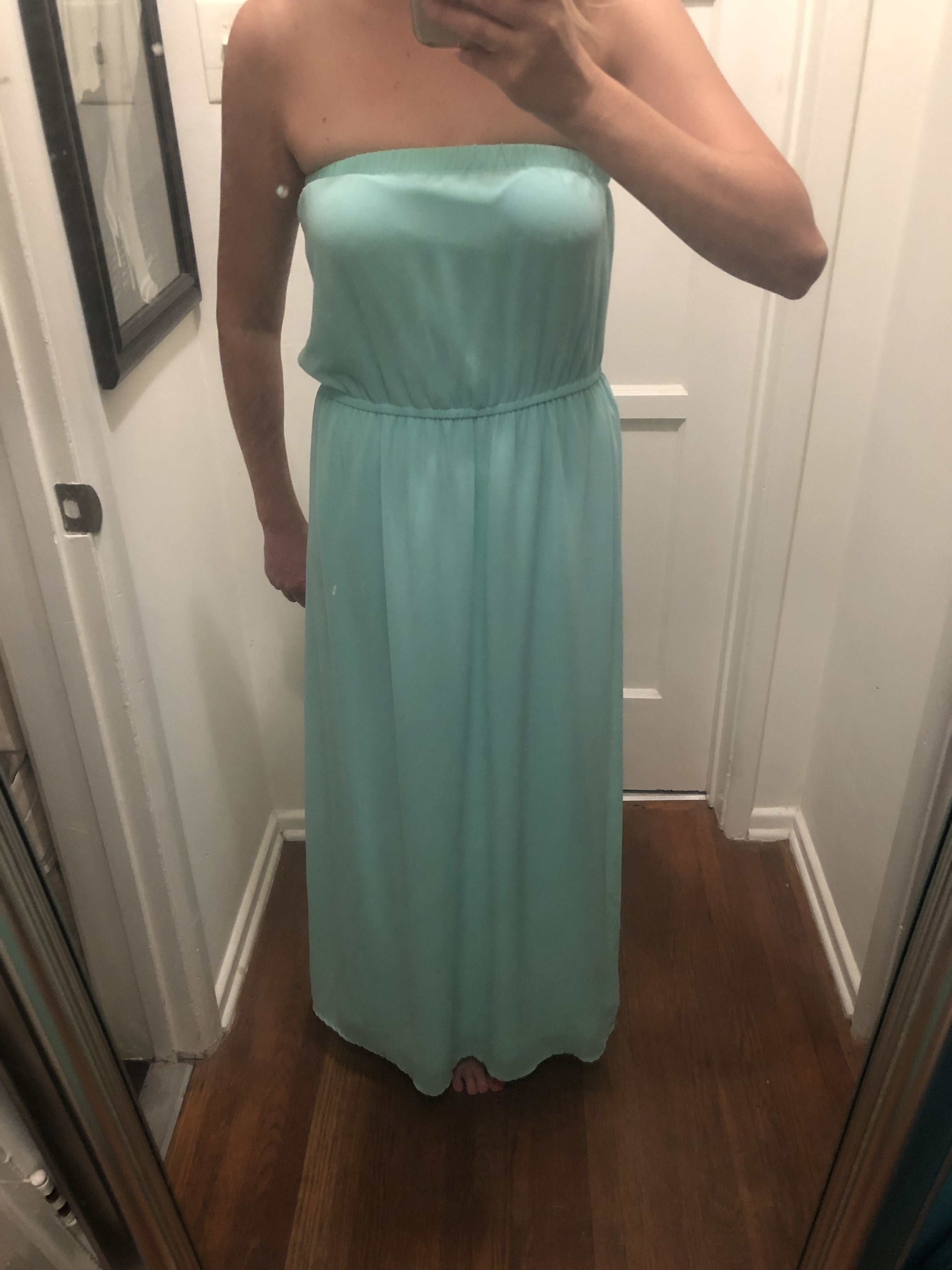 Sea foam/ mint green, Tube Top styled maxi dress made with polyester material from Forever 21. Only worn a few times. Great for a Summer wedding, bridal shower, baby shower... or just a nice brunch!
