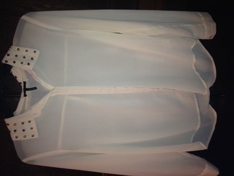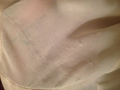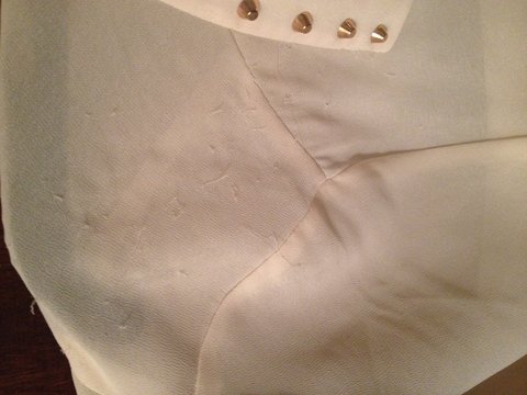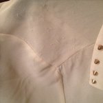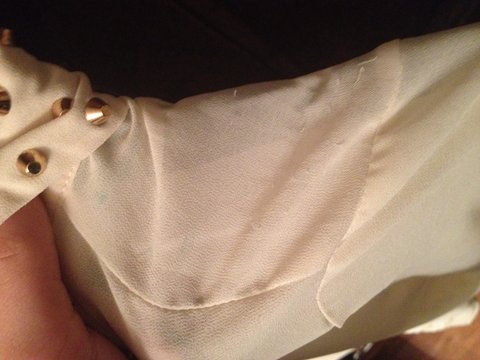 Under thee color there is a few light green spots? Can't be noticed though when the collars down. The blouse is a little pulled on the shoulders due to my chain purse -_-