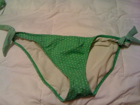 Soo cute! top is reversible! one side striped and other is polkadots. top is small and bottoms are large but fit smaller.
