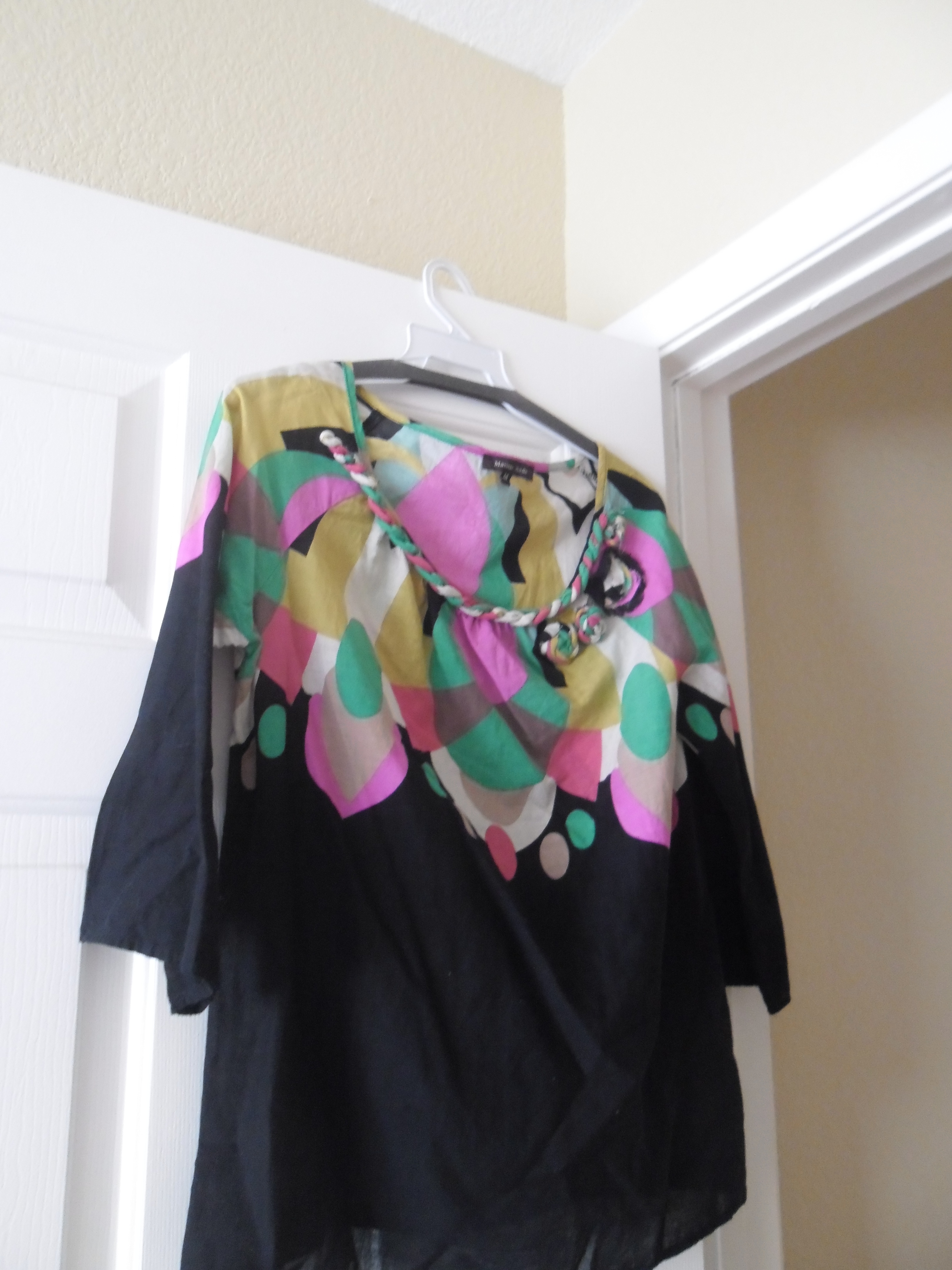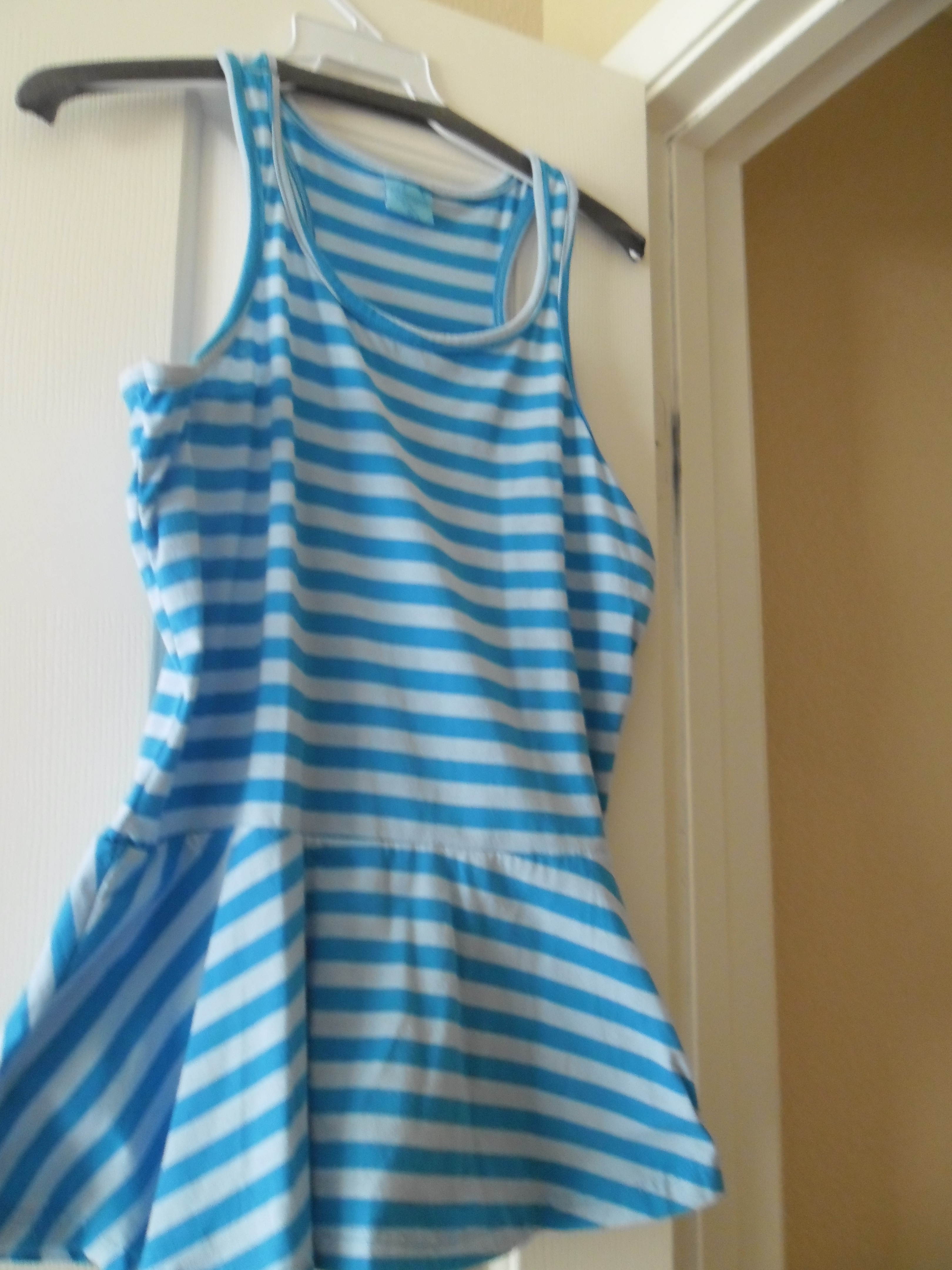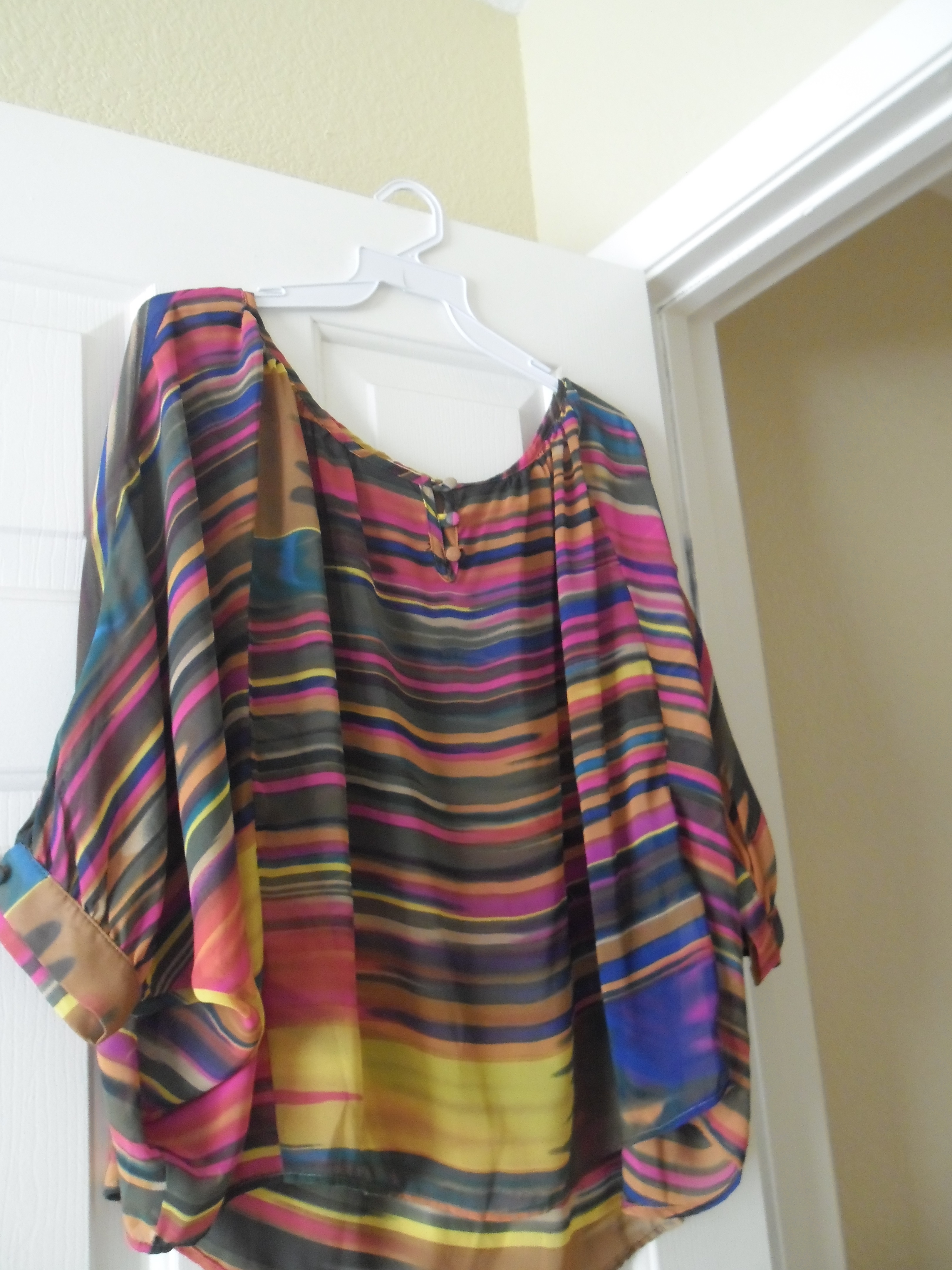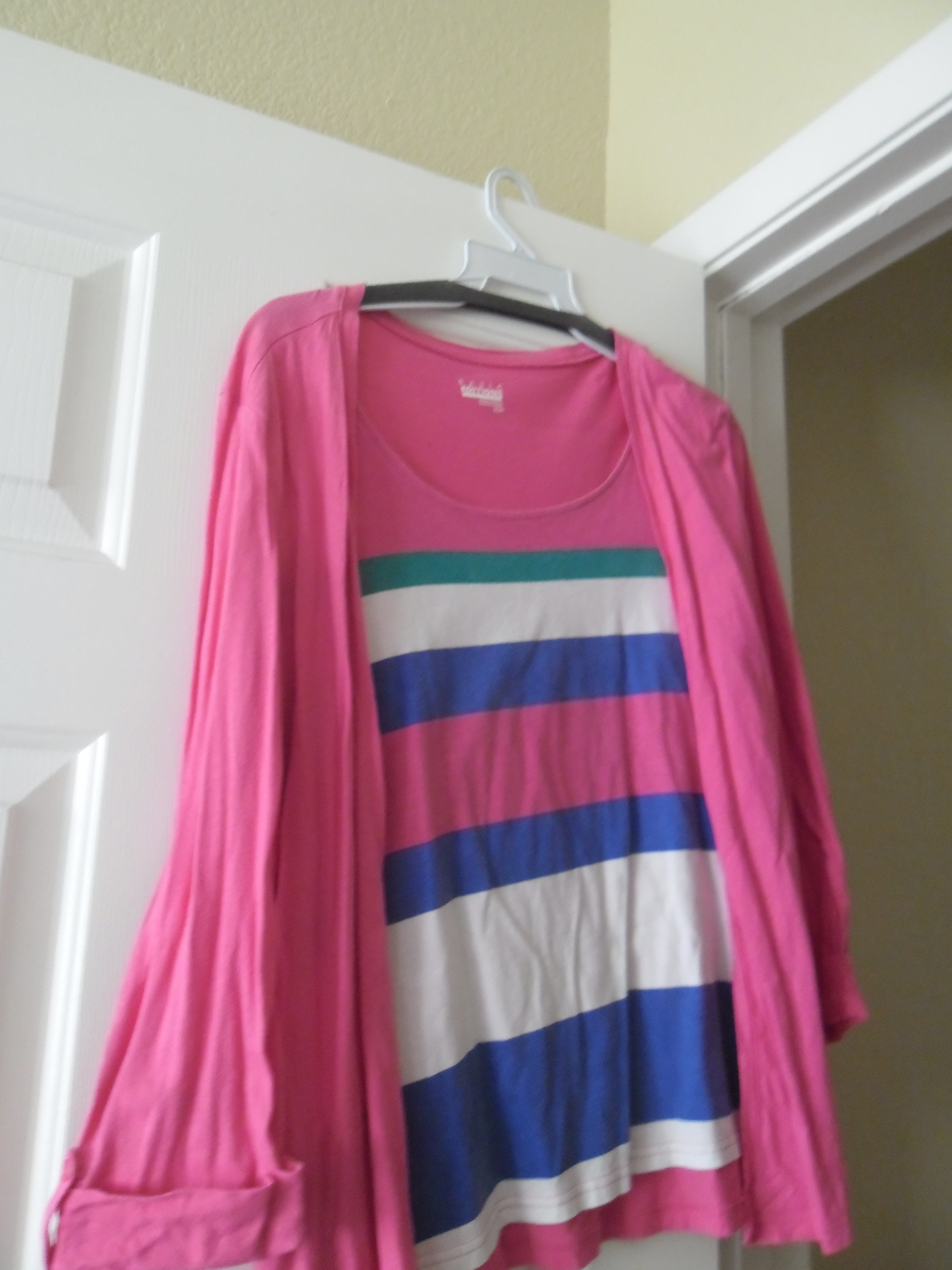Top with Cardigan Attached. Pink with Green, White, and Blue Stripes