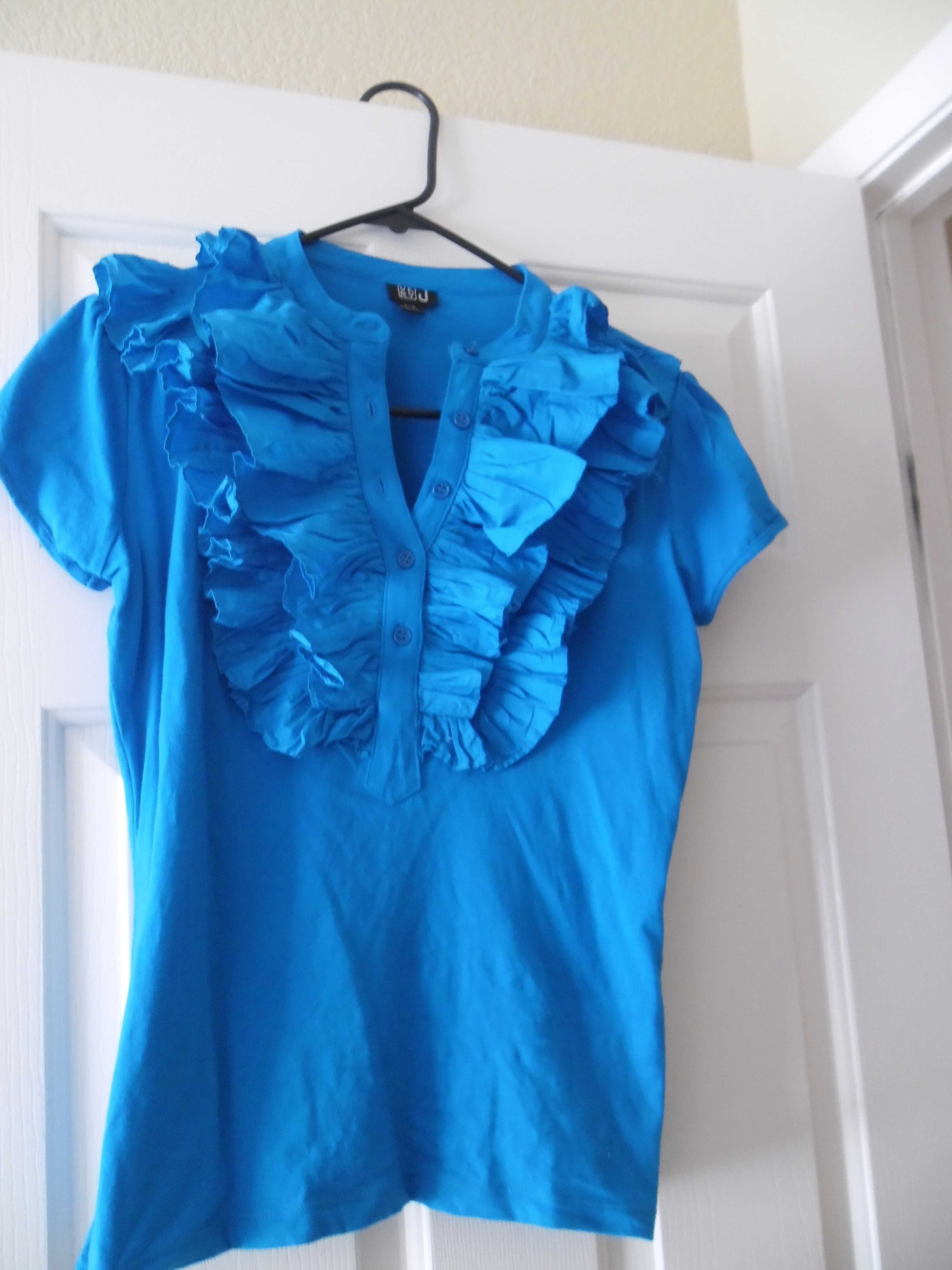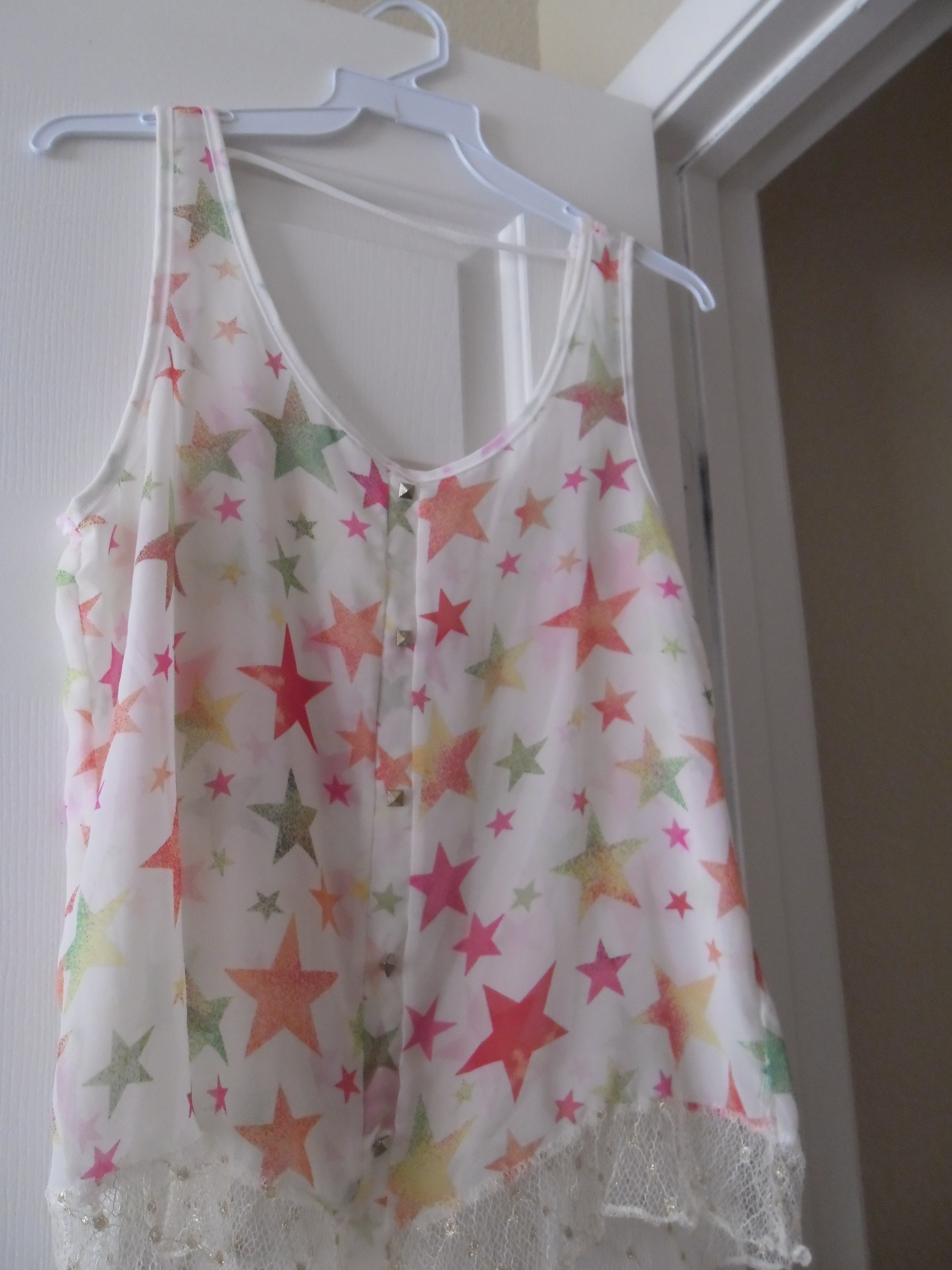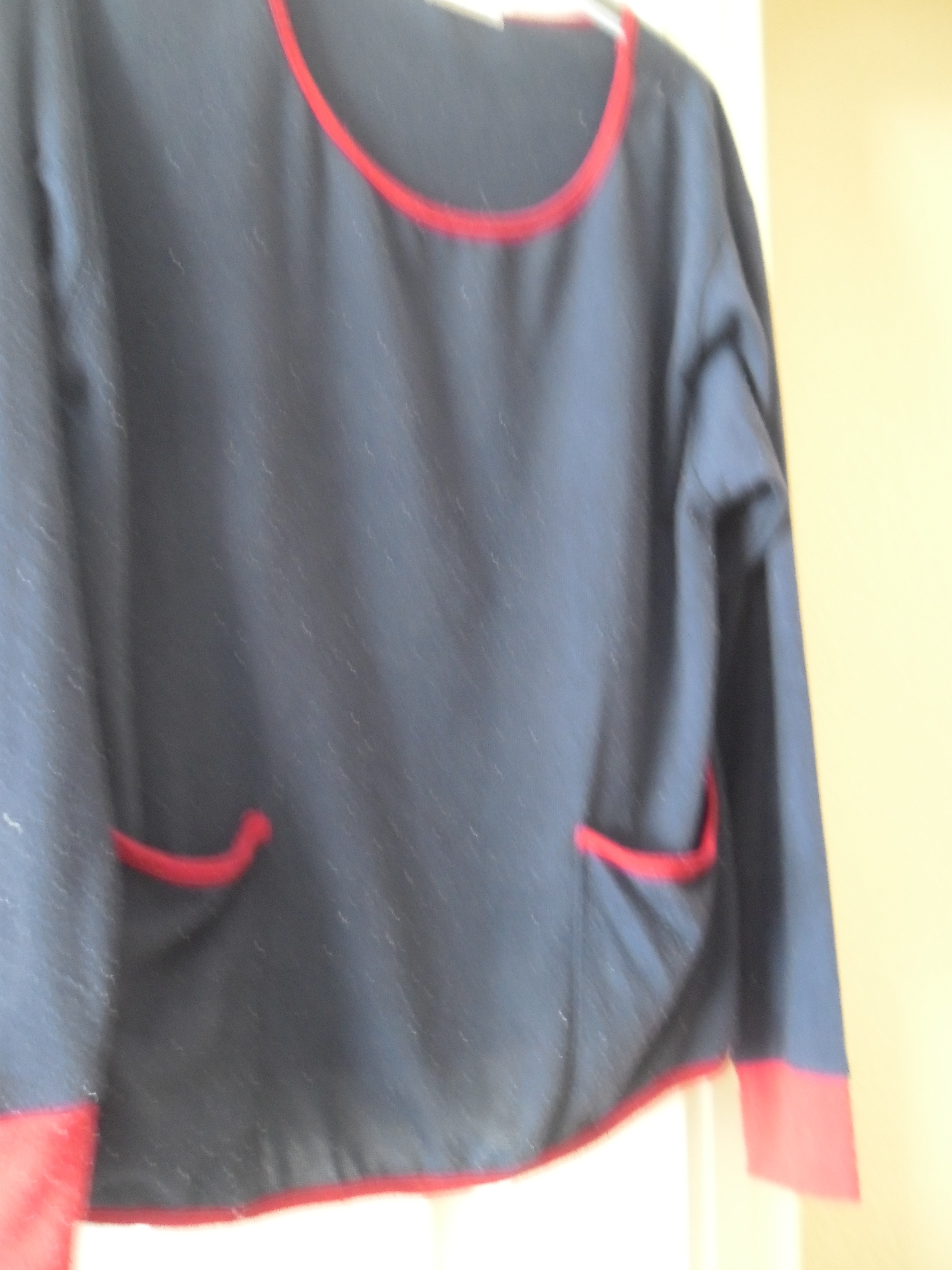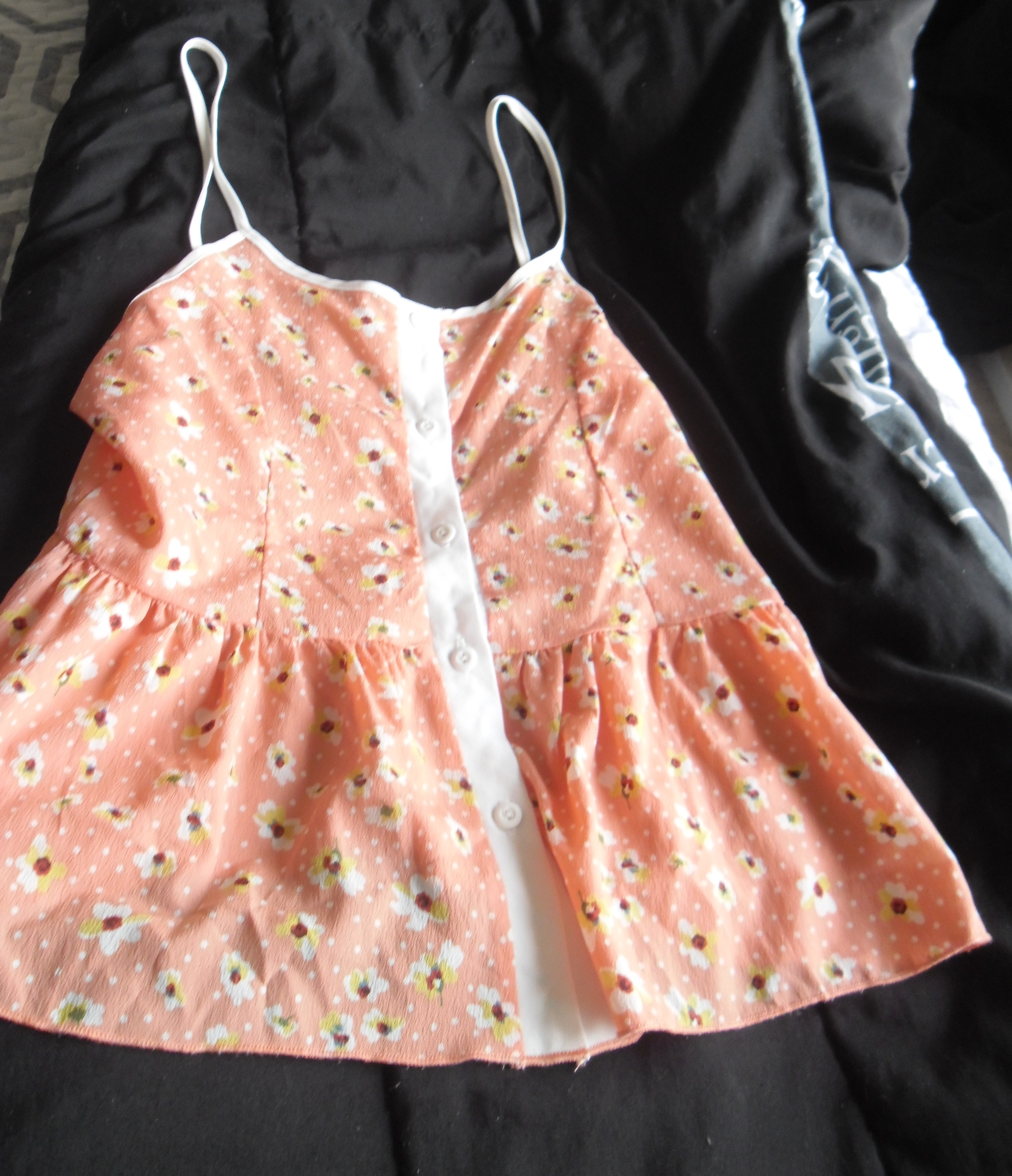 Top with Cardigan Attached. Pink with Green, White, and Blue Stripes