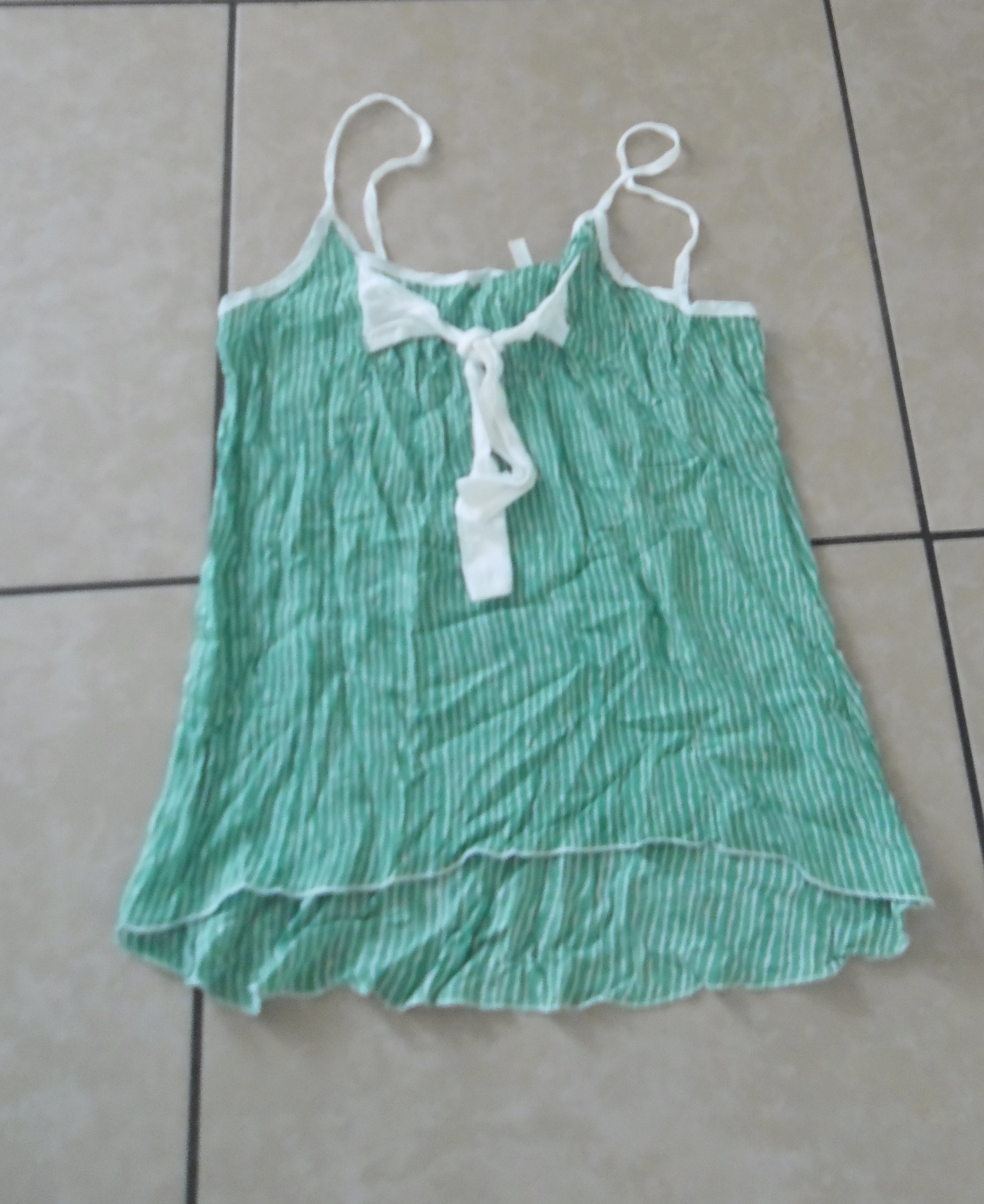 Green and White Sleeveless Top