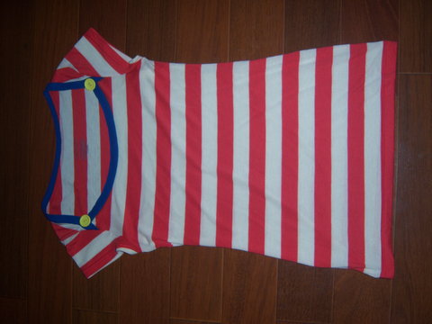 Small in stripes (orange-pink with cream-white colors) very cute. worn 2 to 3 times. good to very good condition