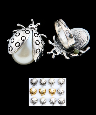 NEW. I bought a few of these rings, and keep my favorite color. Decided to rehash the ones I don't want. This rehash is for the SILVER color. I also have other similar style rings on here as well. Very cute lady bug w/pearl I'm using the online photo where I bought it from. I didn't take the photo myself that's why it shows a few other colors.