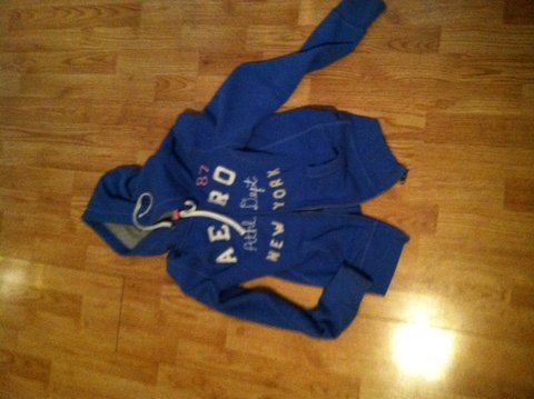 Navy Blue Aeropostale pull-over long sleeved tshirt. Supposed to be a short length. Has bleach stains at the bottom