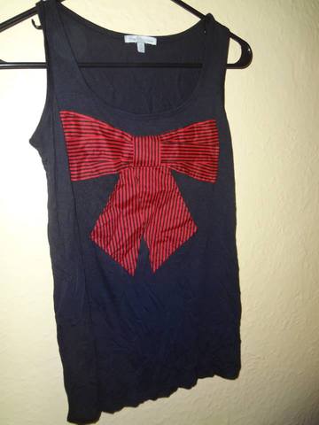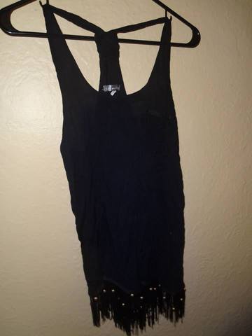 nwot, super cute has a black pocket on right side with fringe hanging, has fringe and gold beads all around the bottom, racer back style