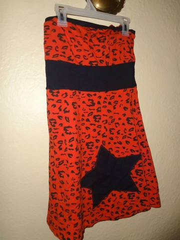 worn a few times, size small, bright orange with black cheetah print, strapless, excellent condition