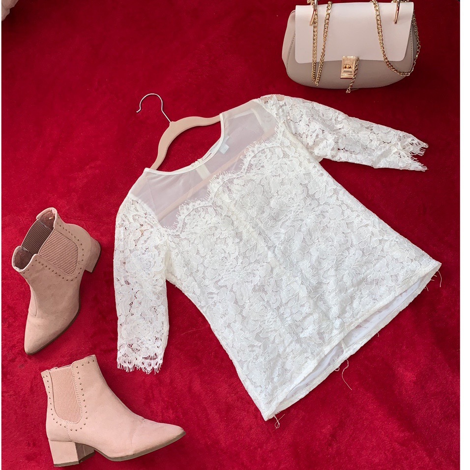 Vintage Floral White lace & mesh detailed patterned shirt Lace top lace mesh top lace T-shirt lace b