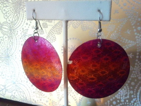 Printed shell earrings in ombre pink and orange. does have tiny chip in one. barely noticable