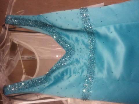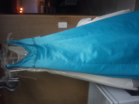 Nwt long blue formal. Beautiful. Missing a button but easily fixed by just sewing one on. Pretty back. Show a bit of skin!