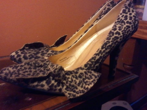Re rehash. Changed jobs and now have to switch heels for sneakers. Beautiful print with side bows. Stunning and sexy.