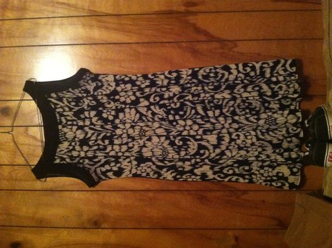 Nice black and white dress, absolutely no problems. I've never been able to fit into it because it was to big, it is a size 14 ladies.