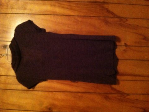 Nice purple shirt, slightly long, comes down to my bum. It DOES have belt loops, but I don't have the belt to it.