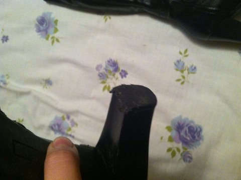 Great boots! Very comfortable! The only damage is a little ware to the heel and a couple of scuffs to the toe.