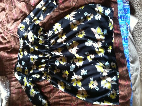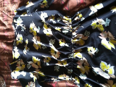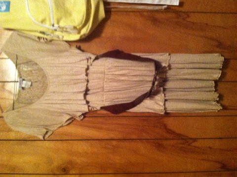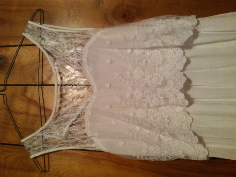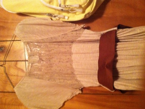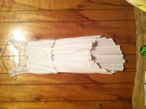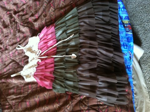 Never been worn. Comes in at waist to define it. Kind of a layered dress with lace at the back. This is juniors!