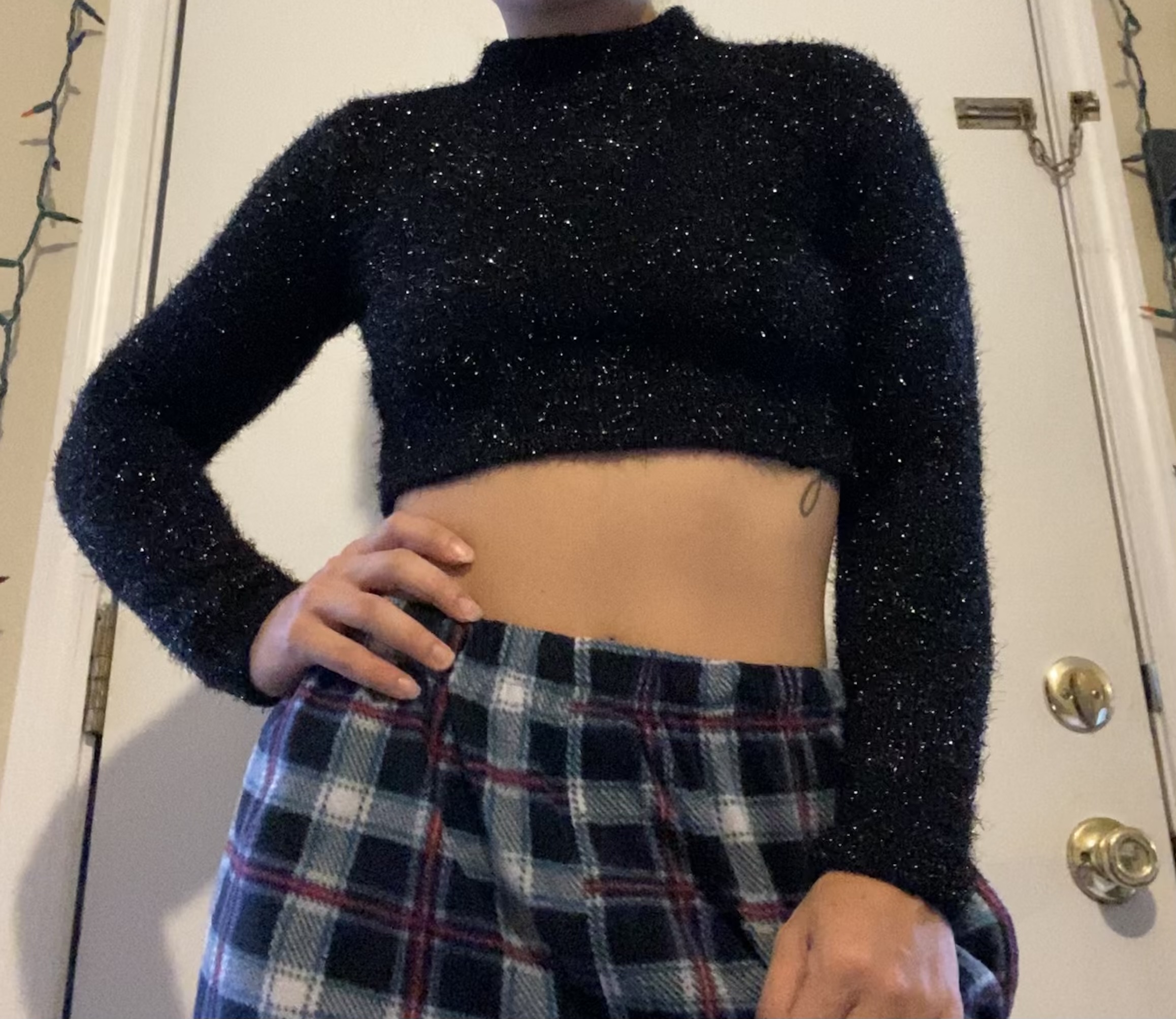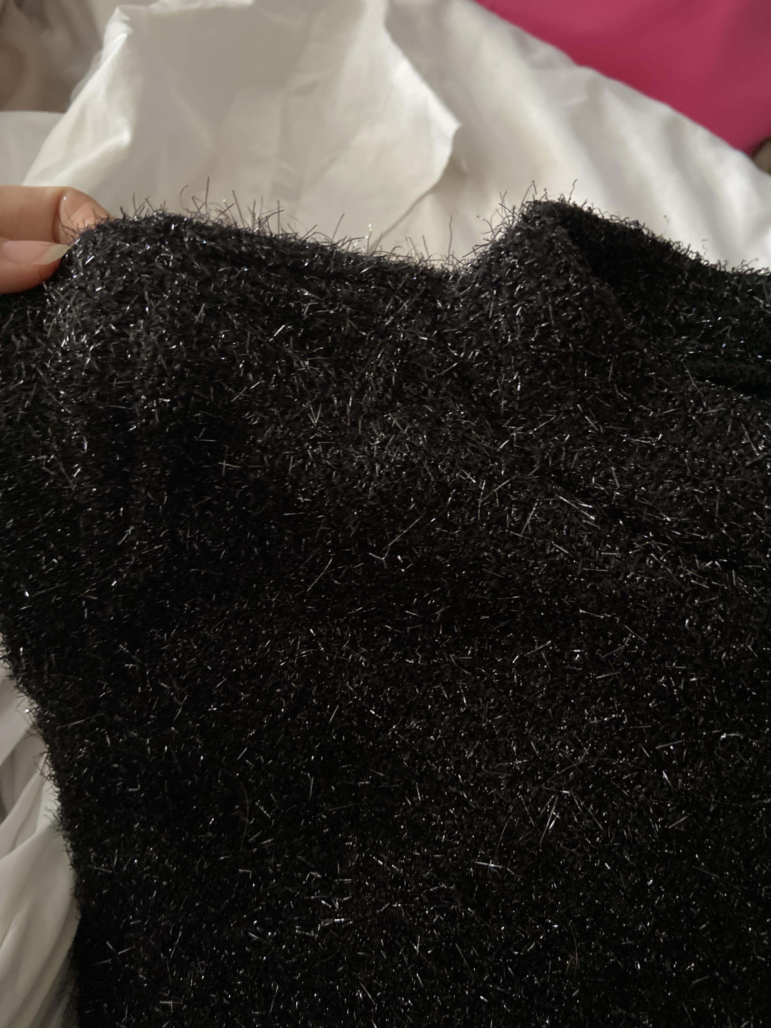 Super cute long sleeve turtleneck crop with sparkly/fuzzy(ish) sweater material. Only worn once. It’s definitely a little itchy but after a couple drinks you won’t notice :)