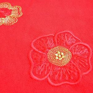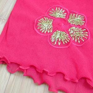 Two layers of mesh fabric with lettuce edge, front of top layer has flower embroidery, made in Italy