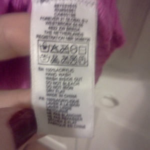 i only more it 4 or 5 times but it is 100% acrylic i believe so its a bit pilly. no holes, its even brighter pink than it looks in the pix! size small...