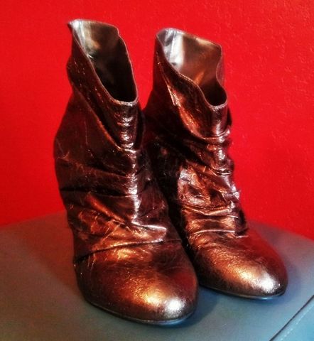 SIZE 5 1/2 BETSEYVILLE BETSEY JOHNSON BRONZE METALLIC SLOUCH ANKLE BOOTS. THESE ARE PRE-OWNED AND IN GREAT CONDITION! THE HEEL IS 4".THE RETAIL PRICE IS $115!! THESE ARE AWESOME!!