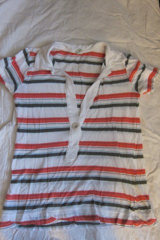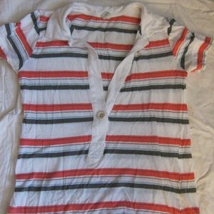 This is an adorable striped polo-type collared shirt by Old Navy. A little sheer and low-cut, it's meant to be worn with tank underneath.