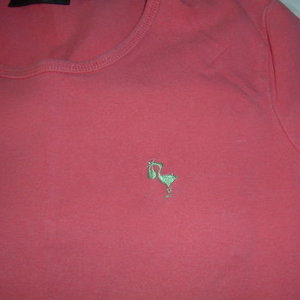 brand - new additions maternity has a stork on it. tag says x small but it fit me my entire pregnancy. the color is more pink like the 2nd picture.