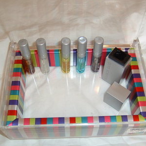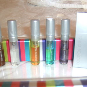 Comes in a case with 5 mini fragrance samples and a thing to put in your purse to take with you without it leaking in your bag. I don't think I have even used these. They smell really nice though. -Spirit -Grace -Intrigue -Whimsy -Heart