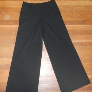 Really nice suit/dress pants. Only worn once, but one belt loop is torn, so I marked it as 'good'. Fitted through the hips, then wide leg pants. I can give measurements if you're interested. Size is 2 short.