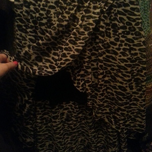 NWT never worn. Small, chiffon material. Tried to show the layering in the images. Has a black waist band.