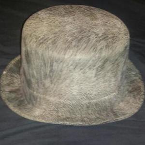 Lovely top hat, great quality. It's made of a tough hard material so it doesn't squish or get bent out of shape. I love it, just doesn't fit my head quite right.
