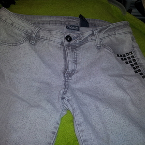 White/grey shorts or capris with awesome stud detail on left front pocket.