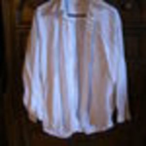 This is a white button up with collar and long sleeves. It is by Perry Ellis and is a size medium. It has a pocket and it in great condition