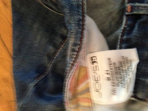I have a pair of joe jeans size 31. They are worn looking (not from too much wear but this is the look)