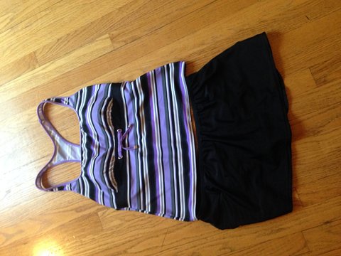 Large bathing suit top and skirt. Wore a few times last summer. Also a phone plug for the car. Wasn't adaptable for my apple phone.