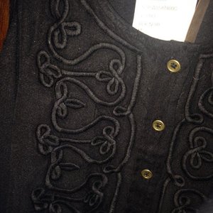 Not sure if I want to get rid of this yet...it's just a little too cropped for my liking. But I love the embroidery! Tagged a M but could fit XS-S depending on how cropped you like it. I can post pictures of what it looks like on just ask(: