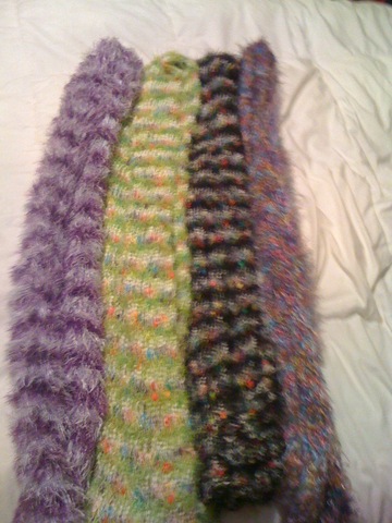 Their super cute and warm. Very colorful! can be worn many different ways their the new kind that u can pull put or push together. (except for the one on the very right, its just a regular scarf)